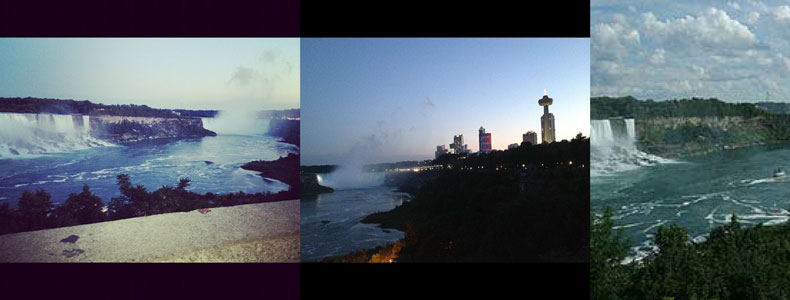 Las cataratas del Niágara de noche se admiran más desde el lado canadiense, pues luces artificiales iluminan ambos lados durante varias horas después del ocaso.