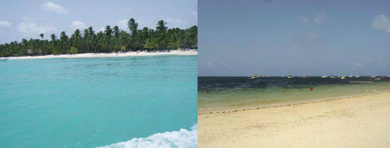 Las playas son de arena blanca y fina, y el mar de un suave color azul verdoso, sin alcanzar el turquesa de las playas caribeñas situadas más al sur.